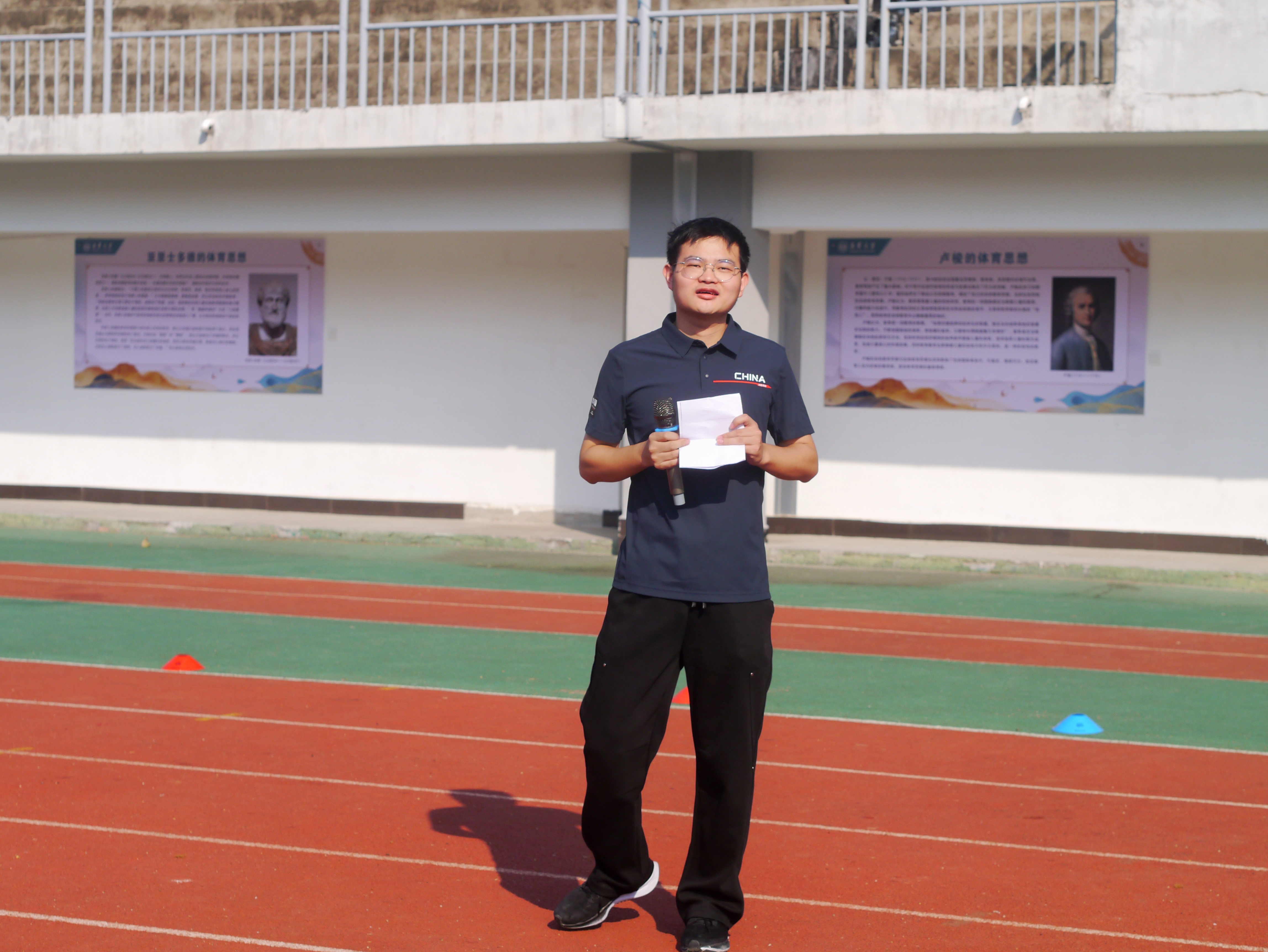 活动开始前,2023级辅导员金锦涛老师作了开场讲话,他阐述了举办本次趣味运动会的目的意义,激励同学们在比赛中充分体验运动的乐趣,放松心情,愉悦身心,同时务必注重安全,严格遵守比赛规则。金老师还期望同学们能将团队合作的精神延伸至学习和生活中,共同为班级、年级、学院学校荣誉而努力。