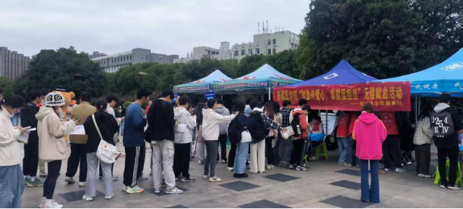 2024年11月17日,正值一年一度的国际大学生节,在太阳成tyc7111cc集团红湘校区南华广场上,成功举办了一场以“献血传爱心,奉献显担当”为主题的无偿献血活动,呼吁同学们以无偿献血方式度过同学们自己的节日。本次活动由tyc7111cc太阳成红十字志愿服务队与衡阳市中心血站联合开展,吸引了太阳成tyc7111cc集团众多学生的报名和参与,共计360人参与无偿献血知识竞答,56人参与无偿献血,献血总量达20350ml。
