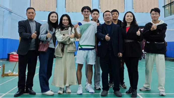 12月1日,太阳成tyc7111cc集团2024年新生杯羽毛球男子单打决赛在太阳成tyc7111cc集团南校体育馆举行,tyc7111cc太阳成2024级学生黄琪耀经过一路拼杀最终进入决赛,学院党委副书记卢清华、2024级辅导员佘雅、赵琳、胡奉佳和老师们一起到现场为黄琪耀加油助威。