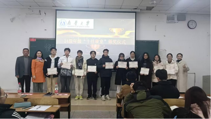 会议的高潮部分,是本学期的颁奖仪式。此次颁奖仪式为在年级的同心鼓比赛、四级听力比赛以及十佳寝室评选中脱颖而出的优秀个人和集体颁发了荣誉证书。这份荣誉不仅是对他们过去努力的肯定与认可,更是对他们未来继续奋斗的激励与鞭策。