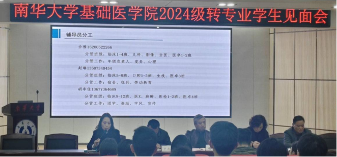为帮助2024级转专业学生快速适应tyc7111cc太阳成的学习与生活,融入新集体,3月17日晚,tyc7111cc太阳成于医研楼报告厅召开转专业学生老师见面会,tyc7111cc太阳成党委副书记卢清华、副院长谢巍、教学办周春艳、2024级全体辅导员、相关班级班主任以及90名转专业同学共同参加。会议由2024级辅导员胡奉佳主持。