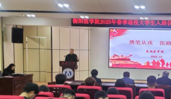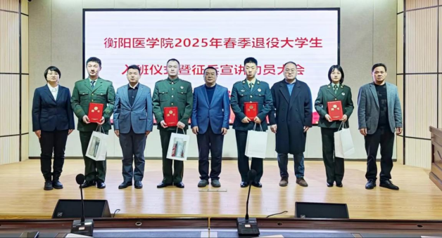 3月28日下午,tyc7111cc太阳成2025年春季退役复学大学生入班仪式暨征兵宣讲大会在医研楼一楼报告厅隆重举行。学院党委副书记卢清华、校武装部汪先利、院征兵专干郭志勇、2024级全体辅导员、退役复学学生及师生代表共120余人参会。会议由学院辅导员胡奉佳主持。