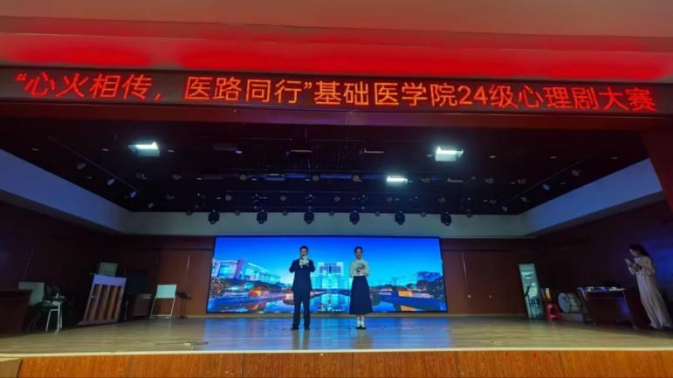 本次复赛共有6个原创心理剧剧目。临床08班带来的《突围》率先登场,以细腻的笔触刻画了学生在人际交往与学业竞争中如何突破心理桎梏,点明了与他人携手并行共同成长才是校园生活的真谛;临床02班的《蜕变》则通过少年跌倒后重新站起的转变,展现了友谊与自我接纳的力量;医卓04 班的《向阳生长》以医学生的焦虑为切入点,再现了在老师、同学帮助下,找到理性与热爱的平衡点的动人时刻;医卓01 班的《破茧》聚焦原生家庭对个人的影响,以极具张力的表演,讲述了突破心理枷锁的蜕变之旅;临床01班的《完美牢笼》深刻探讨了当代大学生对“完美”的过度追求以及与自我和解的过程,完美的追求不该成为人生的枷锁,他人的期待不该成为束缚自我的牢笼;医检01班的《我和我的压力们》则以诙谐幽默的方式解构压力,引发观众共鸣。舞台上,演员们全情投入,用生动的表演、真挚的情感将剧本中的故事娓娓道来;舞台下,观众们沉浸其中,时而屏息凝视,时而掌声雷动。每一个角色的呐喊与欢笑,都成为触动心灵的共鸣点,为有相似经历的同学提供了温暖的参考与指引。