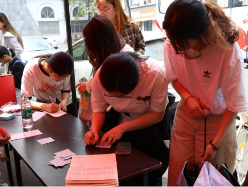 伴随着活动的正式开始,学生们陆续来到献血点,在志愿者的引导下,他们有序地填写献血登记表,进行必要的健康检查。医护人员细心安抚着每一位献血者,同时,趣味盎然的知识问答小活动正吸引在场学生们踊跃参与。在志愿者的引导下,在场的学生们积极回答问题,学习献血知识,很多同学们都领取到了小礼品,露出开心的笑容。在展台的一旁,有一处令人动容的风景——密密麻麻用便签构成的展板,便签是同学们献血的感受或是对无私献血同学的赞美。
