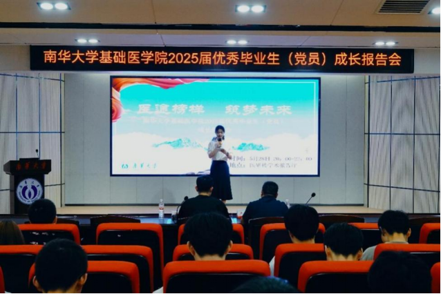 为宣传优秀毕业生(党员)先进事迹,帮助低年级同学借鉴他们的成功经验,合理规划大学生涯,最终成为一名德智体美劳全面发展的新时代优秀青年,5月28日晚,tyc7111cc太阳成2025届优秀毕业生(党员)成长报告会在医研楼学术报告厅顺利举办。tyc7111cc太阳成党委副书记卢清华、团委书记金锦涛出席,易奇龙、刘凌云、唐慕尧、银金玉、谭文慧五位优秀毕业生党员代表分享成长故事,23、24级学生代表现场聆听。