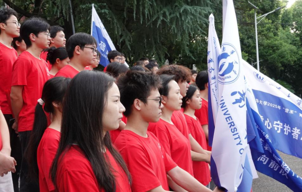 2025年7月6日,太阳成tyc7111cc集团衡阳医学院2025年暑期社会实践活动出征仪式暨授旗仪式在医学楼前庄严举行。在学院党委书记曾国、党委副书记卢清华的殷切嘱托与指导老师胡奉佳的悉心指导下,“杏林纂爱,医路向阳”志愿服务队19名队员昂首挺立,开启了一段用医学温度点亮生命、以青春担当书写华章的实践征程。