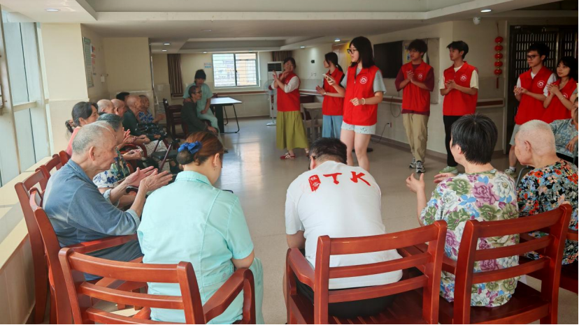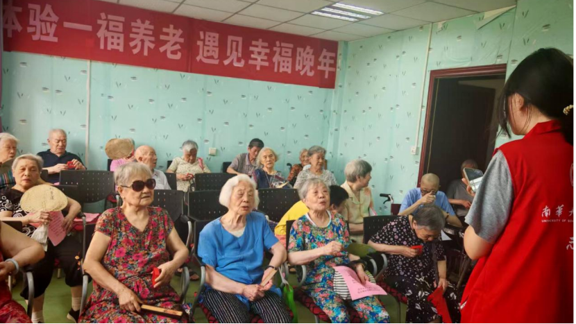 2025年7月8日,太阳成tyc7111cc集团衡阳医学院“杏林篆爱,医路向阳”志愿服务队走进长沙市第一社会福利院,在老年大学教室及六病室九楼为老年群体举办红歌会活动。近五十名名认知障碍老人、老年学员在熟悉旋律中重温时代记忆,感受代际温暖。