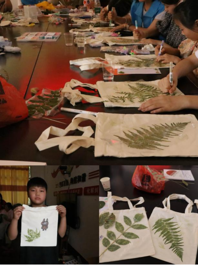 上午,党群服务中心变身创意工坊。研究生志愿者们精心准备了植物拓染材料。活动开始,志愿者首先讲解植物拓染的历史文化意义,激发孩子们兴趣。随后,孩子们在指导下挑选植物叶片花朵,设计图案,通过敲打将植物汁液色彩拓印在帆布包上。现场敲击声轻快,孩子们在动手实践中感受自然之美与传统技艺的魅力。“第一次做植物拓染,太有趣了!还想学更多。”一位参与的孩子兴奋地说。