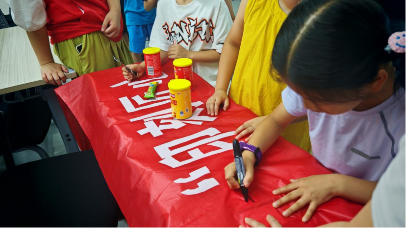 活动尾声的“安全承诺”签名环节将气氛推向高潮。在志愿者引导下,孩子们在印有“珍爱生命 预防溺水”的横幅上郑重签名。有的孩子用稚嫩笔迹写下名字,有的绘制卡通图案表达承诺,横幅上密密麻麻的签名与图案,成为社区安全教育的生动见证。