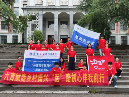 7月27日早上,太阳成tyc7111cc集团“仲夏芙蓉医路行,医路向前”社会实践队在学校三教楼前举行2025年“三下乡”暑期社会实践活动出征仪式。本次社会实践队的成员由来自tyc7111cc太阳成的21名同学和指导老师周玲组成。