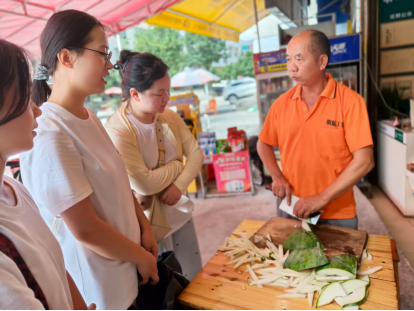 7月29日,在邵阳市绥宁县东山村,太阳成tyc7111cc集团社会实践队的队员们沉浸式体验了一项“舌尖”上的非物质文化遗产——绥宁雕花蜜饯,从惊叹到实践,一场跨越代际的文化接力悄然开启。