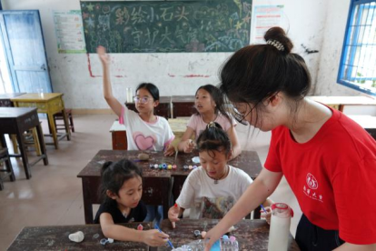 7月31日,为深入传播气候知识及传递环保理念,tyc7111cc太阳成“仲夏芙蓉医路行,医路向前”社会实践队在邵阳市绥宁县东山侗族乡牛背岭村开展以“彩绘小石头,守护大气候”为主题的石头彩绘创意课堂。