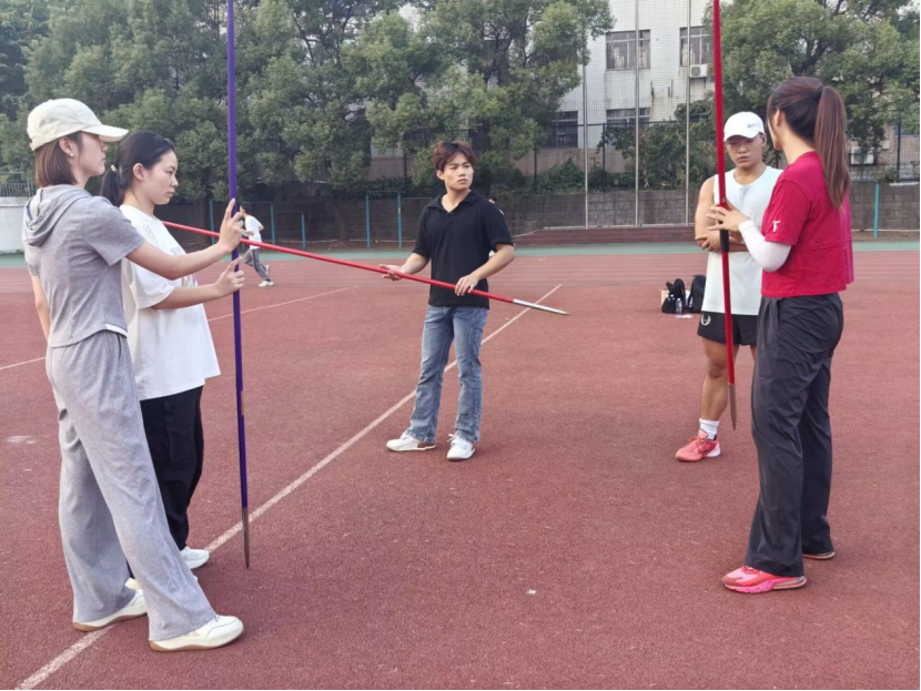 指导环节,朱老师结合大运会竞赛项目特点,将指导内容精准划分为田赛、径赛两大模块。针对短跑起跑节奏、跳远腾空姿态、标枪发力顺序等关键技术点,老师通过“示范讲解+一对一纠错”的方式,逐一对运动员的动作短板进行调整;同时结合每位运动员的体能与技术特点,提供个性化后续训练方案,帮助大家明确“强化优势、补足短板”的训练方向,让指导成果切实转化为备战实效。