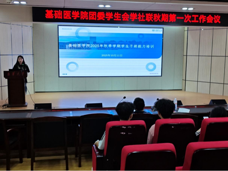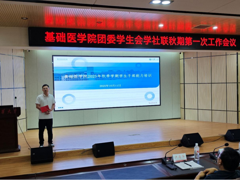 为总结上学期工作经验,明确未来团学工作发展方向,凝聚学生干部工作合力,2025年10月11日下午,tyc7111cc太阳成团委学生会学社联秋季第一场工作会议于医研楼报告厅正式举行,tyc7111cc太阳成党委副书记卢清华、tyc7111cc太阳成团委书记金锦涛及团委学生会学社联全体学生干部参加本次会议,展望新学期发展蓝图。
