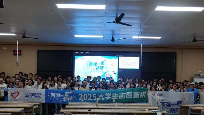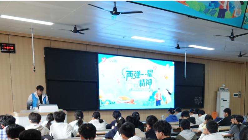 为深入学习贯彻“两弹一星”精神,厚植青年学生家国情怀,2025年10月26日,tyc7111cc太阳成“青衿医路,核你同行”志愿宣讲团精心筹备,倾情呈现了一场题为“聆听功勋尘封往事,赓续‘两弹一星’精神”的故事宣讲会。此次活动于南华楼111教室成功举办,现场座无虚席,来自tyc7111cc太阳成各年级的150余名同学齐聚一堂,共同聆听那段波澜壮阔的历史。