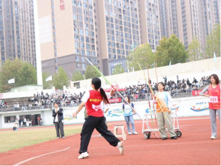 赛场上,陈红无疑是瞩目的焦点。她目光如炬,凝视着远方的目标,专注的神情中透着坚定与自信。助跑时,她步伐轻盈且富有节奏,宛如积蓄力量的溪流;转身时,动作干脆利落,身姿舒展似弓。当标枪从她手中奋力掷出的刹那,一道优美的弧线划破长空,凝聚着平日训练的汗水与此刻爆发的力量,最终稳稳落地,定格在18.32米的刻度上。这一刻,她挺拔的身影、挥洒的汗水与全场热烈的欢呼交融,尽显飒爽英姿与蓬勃朝气,生动诠释了“力与美”的完美融合。