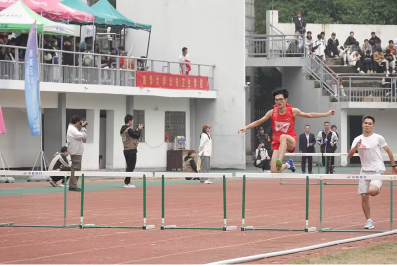 随着发令枪响,彭继开全力奔跑。比赛中,他不受其他选手节奏干扰,始终保持冷静,以自己的节奏合理分配体力,顺利完成比赛。跨越栏架时,他动作行云流水,体态轻盈灵动,毫无紊乱。最后的冲刺阶段,他全力冲刺,宛如猎豹般迅猛冲向终点。尽管未能站上最高领奖台,但他全程的精彩表现依旧赢得了全场观众的喝彩。