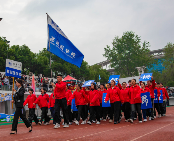 开幕式现场彩旗猎猎迎风舞,锣鼓声声震天响,热烈氛围扑面而至。伴随着激昂的运动员进行曲,tyc7111cc太阳成方阵身着中国红服装,迈着整齐划一的步伐,气势恢宏地步入会场。方阵队员们身姿挺拔、精神焕发,每一步都铿锵有力,尽显青春风采。他们眼神坚定如炬,透射出无畏拼搏的力量,以昂扬的姿态、整齐的队列,生动诠释着“更快、更高、更强”的体育精神,更彰显了医学生“坚毅担当、奋勇争先”的精神风貌,现场掌声与欢呼声此起彼伏。