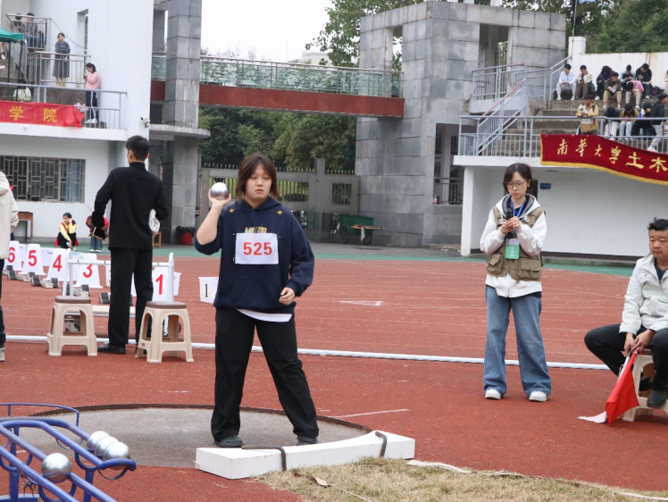 竞技赛场从不缺少挑战,铅球项目更是对选手力量、技巧与心理素质的综合考验。比赛现场氛围热烈而紧张,来自各院的参赛选手们个个摩拳擦掌,实力不容小觑。轮到吴欣芸登场时,她眼神坚定、神情专注,丝毫未受现场氛围影响。转身蓄力时,身体充分扭转,将全身力量凝聚于一点。投掷瞬间,手臂猛然发力,铅球如离弦之箭般划破长空,带着她的期待与拼搏,稳稳落在7.64米的标记处。这一成绩不仅让现场观众为之喝彩,更让她从众多选手中脱颖而出,成功锁定季军席位。