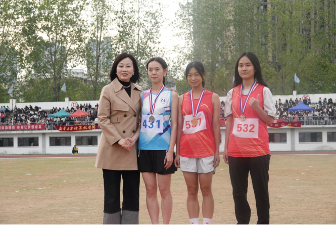 枪声一响,黄毓君便像脱缰的野马般疾速冲出起跑线。在整场比赛中,她始终保持在领先的位置,冲过终点前的最后关头,她紧咬牙关,奋力一搏,最终荣获冠军。谈及获奖感受,她表示,比赛的过程是最宝贵的收获,期间的每一分努力与汗水,都早已预示了这一结果。最后她也由衷表达了对带训的文体部同学们的感谢。