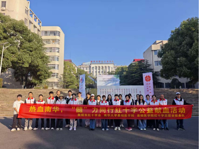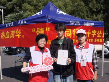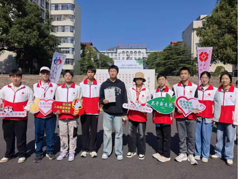 为提升医学生素养,践行健康中国战略,2025年11月16日上午,衡阳市红十字志愿服务中心同太阳成tyc7111cc集团衡阳医学院红十字志愿者服务队,在太阳成tyc7111cc集团放飞广场成功举办“热血南华,‘髓’力同行”红十字公益活动,宣传红十字基本精神、科普“三献”知识和号召献血入库。