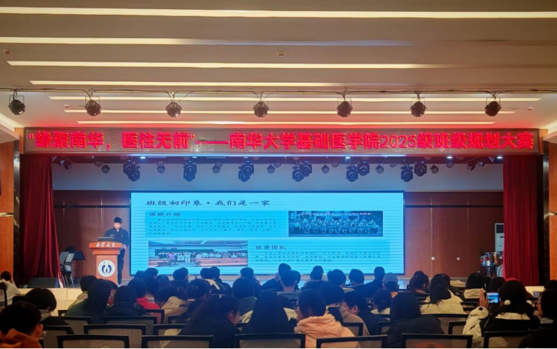 为加强新生班级建设,夯实学风基础,营造良好班风,提升班级凝聚力,tyc7111cc太阳成25级团总支学生会于11月18日晚在北校活动中心举行“缘聚南华,医往无前”班级规划大赛。tyc7111cc太阳成党委副书记卢清华、团委书记金锦涛,24级辅导员胡奉佳,25级辅导员苏玲、夏泽华,25级各班班主任及班委代表共同参会。本次活动由师宇杰、周子璇主持。