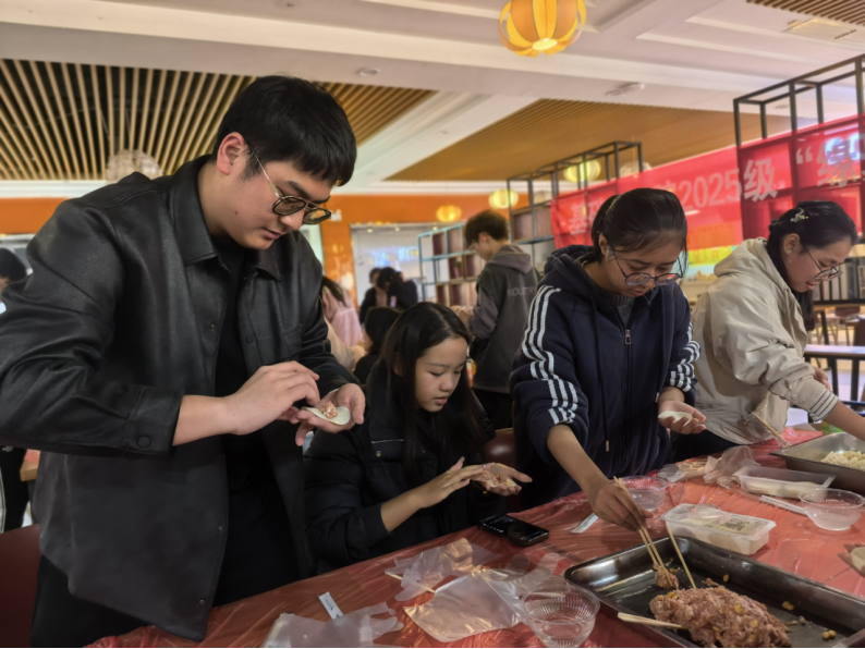 活动伊始,夏泽华以“传承文化,凝聚集体”为主题致开场词。他阐述了冬至传统的文化意义,强调了集体活动对团结同学的重要性,鼓励同学们放松身心,在动手实践中感受文化,在协作交流中增进友谊。活动现场气氛热烈,南北饺子文化分享环节中,同学们畅谈各地饺子风味与包法,充分展现家乡特色文化。间隙开展的造型创意赛、速度赛更是将氛围推向高潮。最后,大家围坐品尝亲手包的饺子,在暖意中增进了友谊、加强了集体凝聚力。