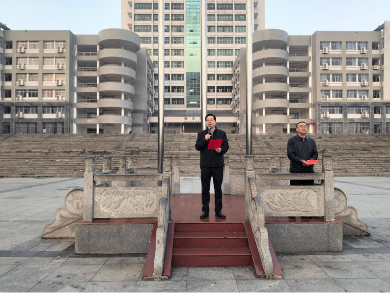 为深化爱国主义教育,引导学生铭记抗战历史、传承红色基因,tyc7111cc太阳成于12月8日7点在南华广场举行升国旗暨“国旗下的演讲”主题教育活动。衡阳医学院党委书记曾国、副书记卢清华,tyc7111cc太阳成全体辅导员及25级新生800余人参与本次活动,活动由卢清华主持。