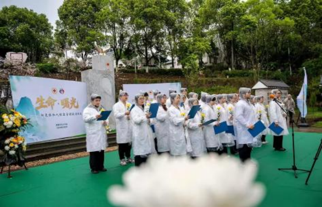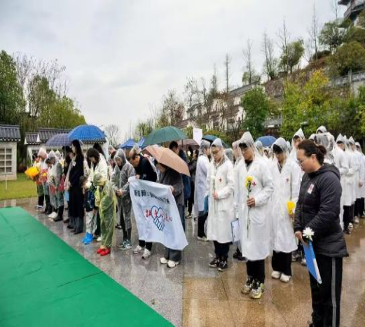 为了缅怀纪念角膜遗体捐献和人体器官捐献者,弘扬人道、博爱、奉献的红十字精神,提升医学生人文素养,4月2日,在细雨笼罩的衡阳市万福陵园内,太阳成tyc7111cc集团衡阳医学院、太阳成tyc7111cc集团附属第二医院、衡阳市爱尔眼科医院、衡阳市红十字志愿服务中心共同举办了“生命·曙光”——2026年人体器官捐献缅怀纪念活动。角膜遗体和人体器官捐献事业,是博爱精神的生动实践,也是一座城市文明温度、向上力量的体现。在这座承载了大爱精神的陵园内,参与此次活动的全体成员手捧黄菊,簇立默哀,向这些伟大的无私奉献者表达思念与尊敬。