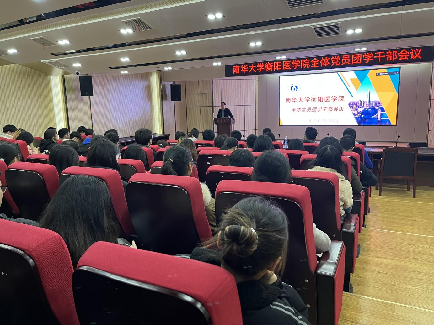 3月26日中午,衡阳医学院全体党员团学干部会议在医研楼学术报告厅召开。参与本次会议的有衡阳医学院党委常务副书记曾国、党委副书记卢清华、全体辅导员以及全体党员团学干部。本次会议分为线上线下两种形式,由学工办负责人佘雅主持。