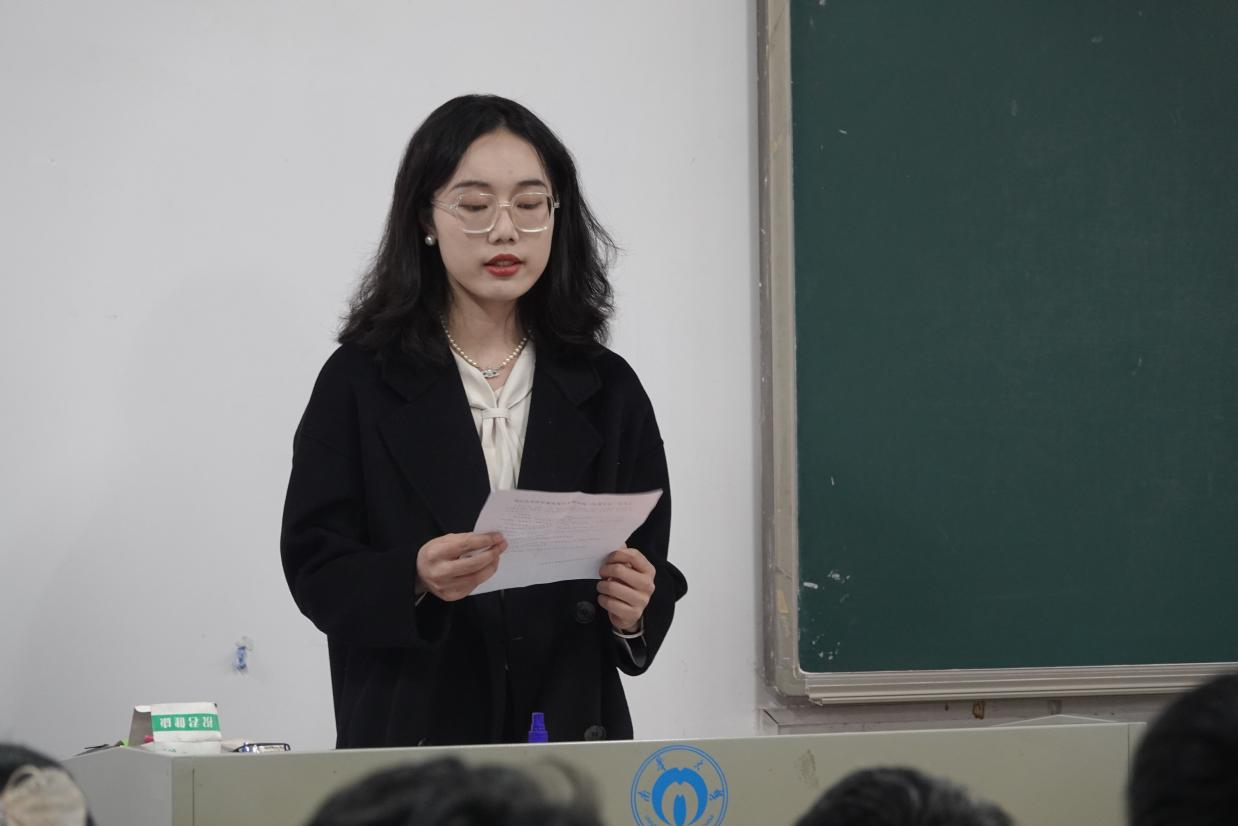 在主持人陈文简要介绍本次开班典礼的背景后,全体与会人员高唱国际歌。高亢嘹亮的国际歌彰显出入党积极分子们抖擞的精神面貌,拉开本次会议的序幕。此后,王雅佳上台发言,她简洁明了地介绍了入党积极分子培训班基本的考核方式和培训期间纪律的维持方式,并对入党积极分子在学习和生活方面进行规定。“入党积极分子要能在各个方面起引领带头作用”,她向在场学生强调。