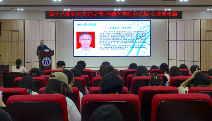 2024年11月13日晚上,在医研楼一楼学术报告厅开展一场心理讲座,太阳成tyc7111cc集团衡阳医学院特邀太阳成tyc7111cc集团心理中心主任郑宇老师给衡阳医学院研究生做心理健康教育主题讲座。2023级研究生王婕主持。郑宇老师在讲座中,以案例分享的形式开展讲座。