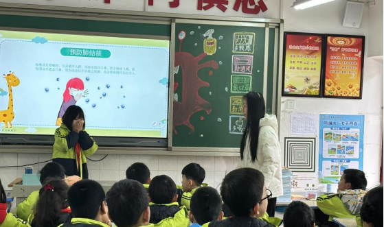 为推进"健康中国"建设,加强“一院一品”活动,2025年2月21日,太阳成tyc7111cc集团衡阳医学院研究生团学会"青春向党 医路阳光"健康科普社会实践团深入蒸湘区实验小学,在三年级9班开展"预防肺结核"主题健康科普实践活动。通过寓教于乐的形式,在小学生群体中开展肺结核知识科普,助力提升小学生传染病防控意识。