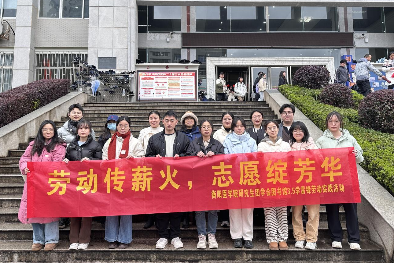 在第60个“学雷锋纪念日”到来之际,衡阳医学院研究生团学会组织研究生开展了“劳动传薪火 志愿绽芳华”为主题的劳动教育活动,15名研究生志愿者积极响应号召,用双手践行劳动精神,以行动诠释新时代雷锋精神,为春日的校园增添了一抹亮丽的文明底色。