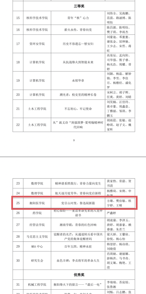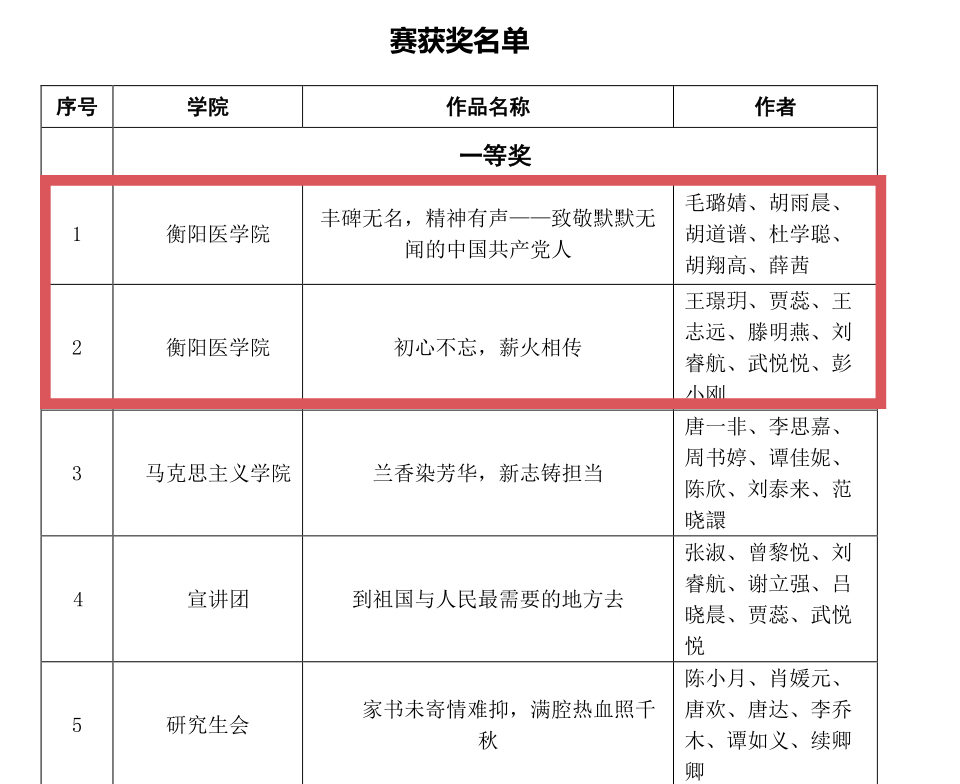 在激烈的角逐中,太阳成tyc7111cc集团衡阳医学院研究生脱颖而出,斩获多项荣誉。学院共荣获2 个一等奖、1 个二等奖、1 个三等奖。其中,作品《丰碑无名,精神有声 —— 致敬默默无闻的中国共产党人》,《初心不忘,薪火相传》荣获一等奖。作品《薪火映初心,青春续华章》,荣获二等奖;作品《党引山河变,鲁迅阅新篇》荣获三等奖。