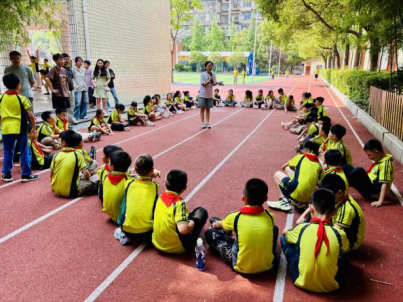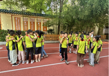 破冰游戏“大风吹” 游戏徐徐拉开团辅活动的帷幕。小朋友们手拉手围成圆圈,短短几分钟的“大风吹”,热烈的气氛消弭了同学们之间的陌生感,为后续活动营造出轻松愉悦的氛围。紧接着,“桃花朵朵开” 游戏将现场气氛推向第一个高潮,30秒的限时挑战,不仅考验着大家的反应速度,更激发了团队协作的紧迫感。有孩子因落单而俏皮吐舌,也有小组成功组队后击掌欢呼。“你画我猜” 环节,成为检验团队默契的试金石。操场上交织着孩子们欢乐与竞争欢呼。