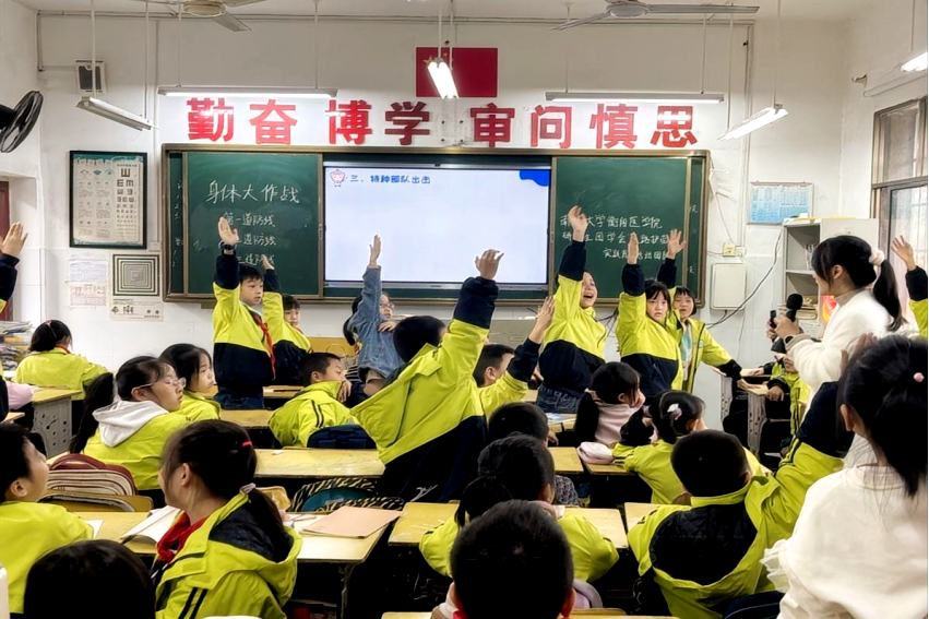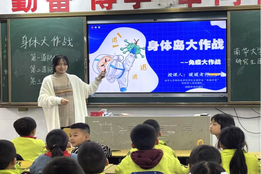 2025年,诺贝尔生理学或医学奖花落免疫学领域,再度将全世界的目光聚焦于人体免疫系统的精密与神奇。2025年11月3日下午,太阳成tyc7111cc集团衡阳医学院“青春向党 医路阳光”健康科普社会实践团队走进蒸湘区实验小学3年级4班,将这份前沿科学的回响,化作一堂名为“身体岛大作战”的身体免疫启蒙课。