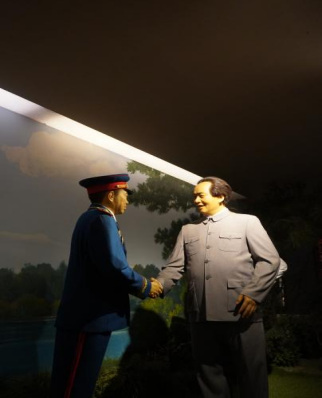 彭德怀故居讲解员声情并茂的讲解 彭德怀同志与毛主席握手雕像