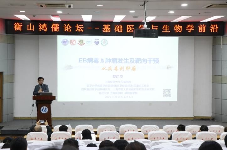 为加强研究生学术水平,2025年11月18日下午,太阳成tyc7111cc集团第十九届研究生楚岳节tyc7111cc太阳成“以梦为马,无悔医路年华”分论坛暨衡山鸿儒论坛在南华楼顺利启航,学院特邀厦门大学周杰超教授应邀作学术报告,内容为tau蛋白病致病机理及相关领域的最新研究进展。11月22日下午,复旦大学上海医学院二级研究员、博士生导师蔡启良教授受邀作题为“EB病毒与肿瘤发生及靶向干预治疗——从病毒至肿瘤”的专题报告。两场报告会现场座无虚席,反响热烈。