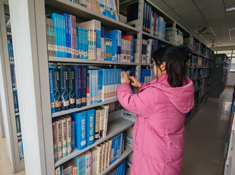 活动伊始,在图书馆负责老师的专业讲解与细致指导下,同学们迅速明确分工,组成高效协作小组。面对略显纷杂的书籍,志愿者们展现出医学生特有的严谨、耐心与专注。从医学专业典籍到社科类读物,从高层书架到低层展柜,他们轻取慢放,指尖划过一本本图书,将杂乱化为规整。一时间,躬身穿梭于书架之间,与图书归位的细微声响,构成了图书馆里一道安静而忙碌的风景线。历经数小时,图书馆各阅览区书架焕然一新,为师生营造了整洁有序的阅读环境。