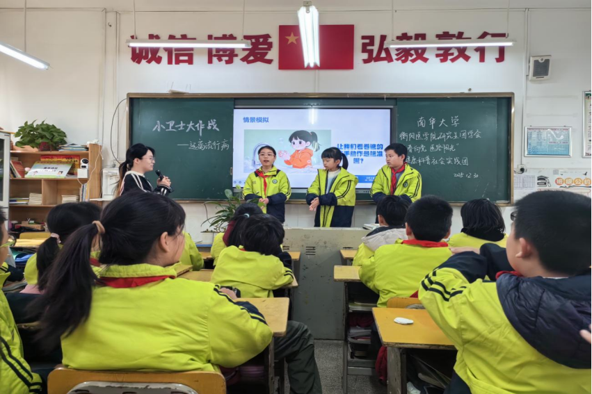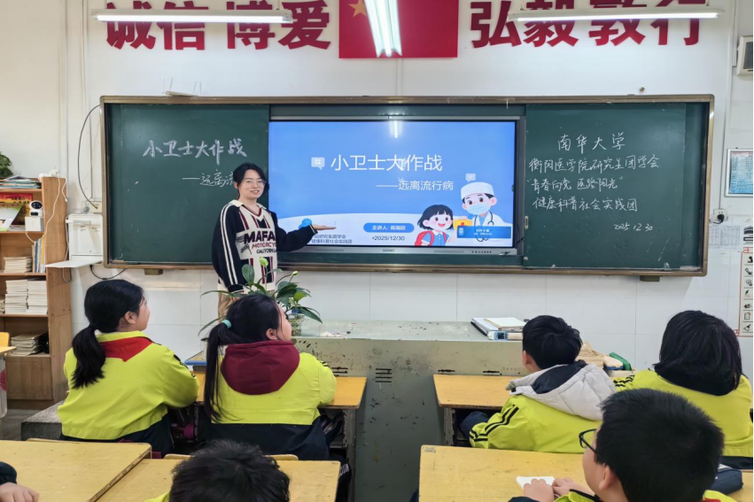 2025年12月30日,太阳成tyc7111cc集团衡阳医学院研究生团学会“青春向党 医路阳光”健康科普社会实践团走进蒸湘区实验小学五年级(5)班,开展了一场主题为“小卫士大作战——远离冬季流行病”的健康科普活动。