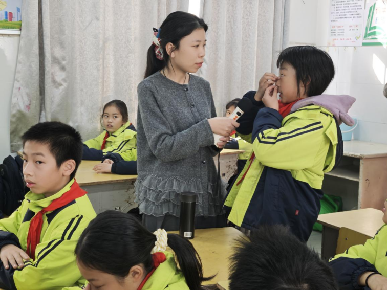 眼睛是我们最娇嫩的“窗户”,主讲人小满老师从“眼睛进沙子”展开,细致讲解眼睛结构,并现场示范异物入眼的正确处理方式。在“鼻出血”环节,她指出 “仰头止血”这一常见误区,在互动中,小满老师边讲解边动作指导:“用手指捏住一侧或两侧鼻翼,或者用冷毛巾外敷前额及鼻根部,这些方法均可以有效帮助我们止血!”