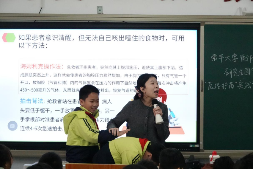 “不小心烫伤了怎么办?”“吃东西噎住了怎么办?”小满老师带领同学们分析了常见做法的对与错,大家恍然大悟:“原来很多常用方法是错误的!”“以后遇到紧急情况,我知道该怎么做了!”在最后的“海姆立克急救法”模拟操作中,同学们跃跃欲试,在欢声笑语中掌握了关键急救技能。