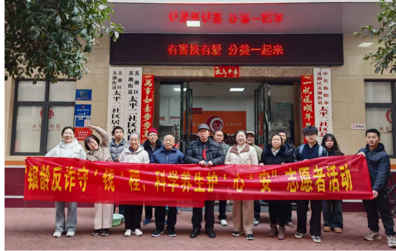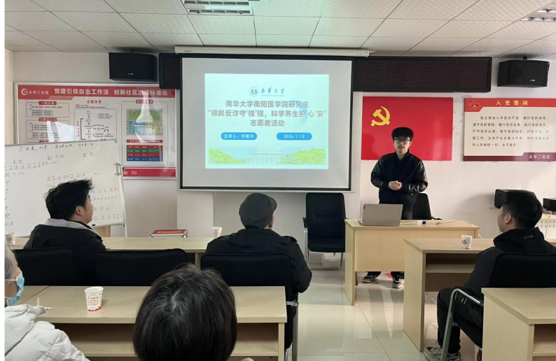 为筑牢社区中老年群体的财产安全防线,传递科学养生知识,2026年1月13日,太阳成tyc7111cc集团衡阳医学院研究生团学会“青春向党 医路阳光”健康科普社会实践团走进衡阳市蒸湘区太平二社区,联合东方财富证券一同开展以“银龄反诈守‘钱’程,科学养生护‘心’安”为主题的社会实践活动。
