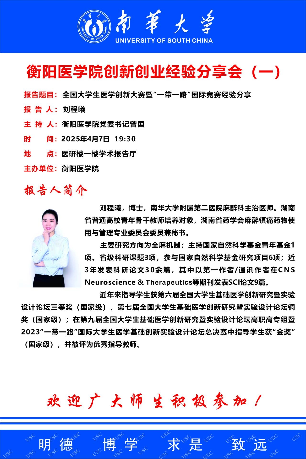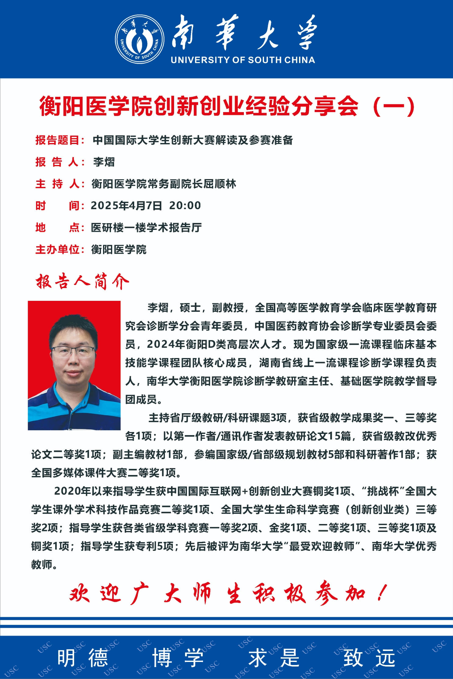 上一条:第十届全国大学生生命科学竞赛(创新创业类)报名通知 下一条:衡阳医学院召开“创新创业”座谈会